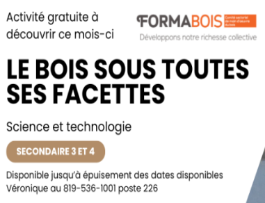 L’Échos de la forêt, fiches d’arbres et  sur la nature, dossiers à propos de la Mauricie et entrevue avec un médecin.